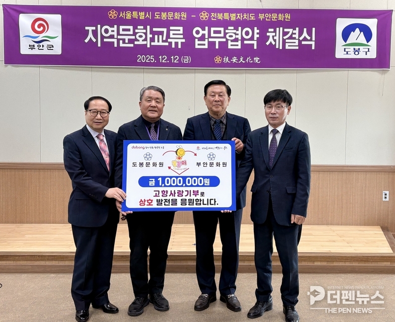 최귀옥 도봉문화원장도 “부안을 직접 방문해 교류하고 고향사랑기부로 마음을 전할 수 있어 뜻깊다”며 “이번 협약을 계기로 두 지역 문화원이 꾸준히 소통하며 상생의 폭을 넓혀가길 기대한다”고 밝혔다.
