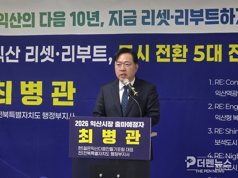 최 전 부지사는 이날 발표에서 “익산은 잠재력이 부족해서 쇠퇴하는 도시가 아니라, 연결하지 못했기 때문에 멈춰 있는 도시”라며 “지금 변화를 미루면 되돌릴 수 없는 선을 넘게 된다. 이제는 도시의 전체 흐름을 젊게 바꾸는 대전환이 필요하다”고 강조했다.