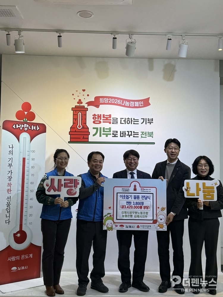 김제시는 18일 김제시공무원노조(위원장 오정후)와 NH농협은행 김제시지부(지부장 김유현)가 에너지 취약계층 지원을 위해 연탄 3,800장(약 342만 원 상당)을 기부했다고 밝혔다.