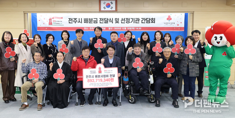 전북사회복지공동모금회(회장 한명규)는 18일 전주시에 2026년 전주지역 배분사업비로 총 8억9271만9000원을 전달했다고 밝혔다. 이번 배분으로 전주지역 77개 사회복지기관과 저소득층 203가구가 실질적인 지원을 받게 됐다.