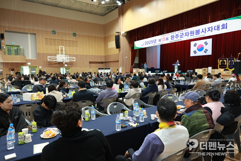 사단법인 완주군자원봉사센터(이사장 이기성)는 19일 완주문화체육센터에서 ‘2025년 제15회 완주군 자원봉사자대회’를 개최했다. 이날 행사에는 자원봉사자와 기관·단체 관계자, 내빈 등 400여 명이 참석했다.