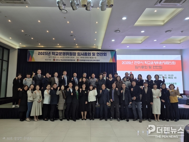 전주교육지원청과 전주시 학교운영위원장협의회는 지난 12월 19일 전주 엔타워 컨벤션 웨딩홀에서 ‘2025년 전주시 학교운영위원장협의회 임시총회 및 연찬회’를 성황리에 개최했다.