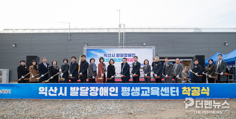 익산시는 24일 월성동 324-1 일원 발달장애인 평생교육센터 건립 부지에서 착공식을 열고 본격적인 공사에 들어갔다. 이날 행사에는 정헌율 익산시장과 한병도 국회의원, 김경진 익산시의회 의장을 비롯해 장애인 관련 기관 관계자 등 100여 명이 참석했다.