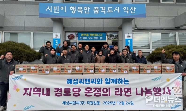 익산 삼기농공단지에 위치한 혜성씨앤씨㈜(대표이사 송영빈)는 24일 삼기면 행정복지센터를 방문해 라면 130상자를 기탁하며 지역 어르신들에게 온정을 전했다.