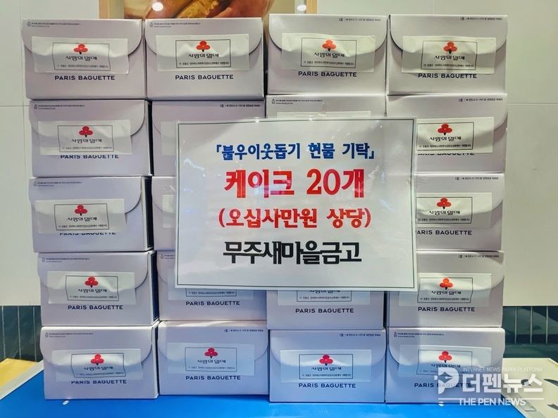 무주새마을금고는 지난 24일 저소득 가정의 아동·청소년을 위해 케이크 20개(54만 원 상당)를 무주읍행정복지센터(읍장 정진화)에 기탁했다. 전달된 케이크는 크리스마스를 앞두고 지역 내 도움이 필요한 가정에 배부될 예정이다.