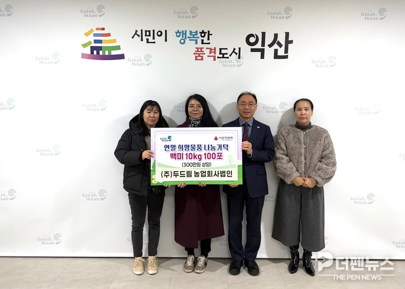 익산시 관계자는 “매년 꾸준한 기부로 지역사회에 온정을 전해주고 있는 두드림농업회사법인에 깊이 감사드린다”며 “기탁된 물품은 꼭 필요한 이웃들에게 정성껏 전달하겠다”고 밝혔다.