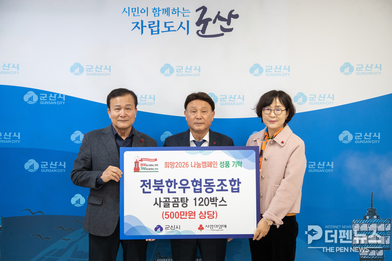 한편 군산시는 ‘행복을 더하는 기부, 기부로 바꾸는 전북’을 슬로건으로 내걸고 2026년 1월 31일까지 ‘희망 2026 나눔 캠페인’을 전개하며 연말연시 이웃돕기 모금 활동을 이어가고 있다.