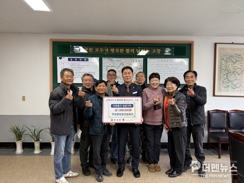 강필구 무장면장은 “지역을 위해 꾸준히 나눔을 실천해주시는 이장단 임원진께 감사드린다”며 “기탁된 성금이 꼭 필요한 이웃들에게 전달될 수 있도록 촘촘한 복지 실천에 최선을 다하겠다”고 밝혔다.