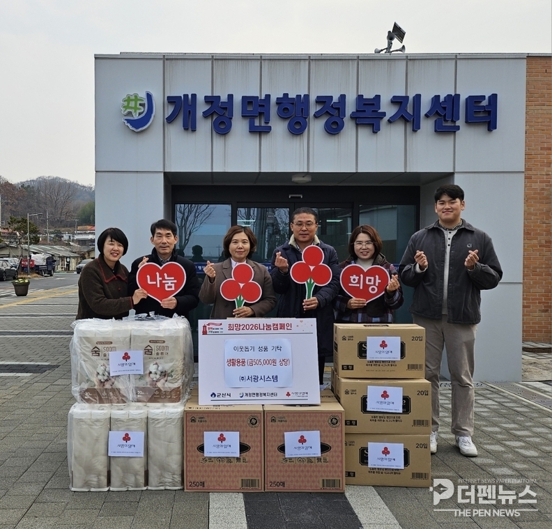 황은호 개정면장은 “지역사회에 나눔의 가치를 몸소 실천해 주신 ㈜서광시스템에 진심으로 감사드린다”며 “기탁된 성품은 관내 저소득 취약계층 21세대에 정성과 마음을 담아 전달하겠다”고 밝혔다.