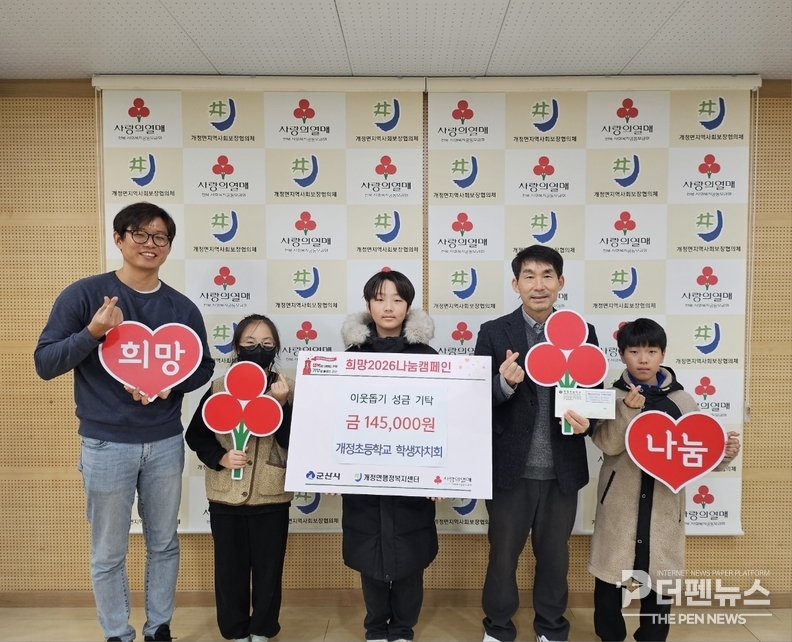 개정면 행정복지센터는 29일 군산시 개정초등학교 학생자치회가 ‘2025 아나바다 알뜰시장’을 통해 마련한 수익금 일부인 성금 14만5천 원을 어려운 이웃을 위해 기탁했다고 밝혔다.
