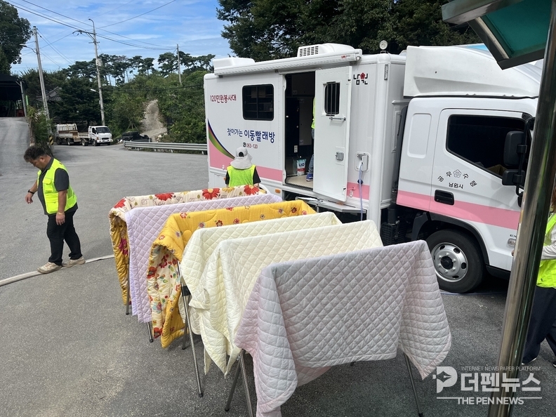이동빨래방은 2.5톤 탑차 2대에 세탁기 7대와 건조기 1대를 갖춘 생활밀착형 서비스다. 공공근로 인력이 직접 이불을 수거해 세탁·건조 후 배달까지 책임지며, 살균과 원단 보호 기능을 갖춘 장비로 위생과 편의성을 높였다.