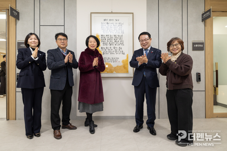 기증된 작품은 ‘익산 시민의 노래’ 가사를 서예로 풀어낸 작품으로, 시민의 자긍심과 지역 정체성을 힘 있는 필치로 담아냈다. 익산을 대표하는 노래를 시각예술로 승화시켰다는 점에서 의미가 크다는 평가다.