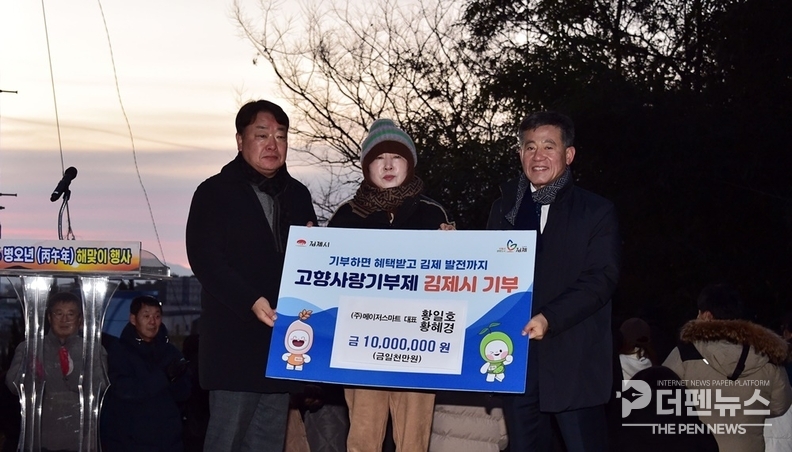 김제시는 지난 1일 열린 해맞이 행사에서 ㈜메이저스마트건설 황일호·황혜경 대표가 2026년 김제시 첫 고향사랑 고액기부자로 이름을 올리며 1천만원을 기탁했다고 2일 밝혔다.