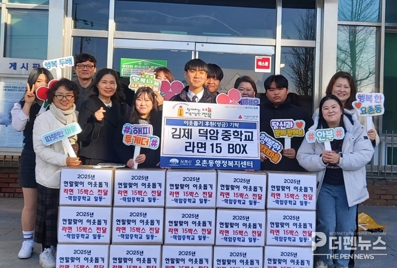 김제시 요촌동 행정복지센터는 지난해 12월 31일 덕암중학교 학생 5명과 지도교사들이 관내 어려운 이웃을 위해 사용해 달라며 라면 15박스를 기탁했다고 밝혔다.
