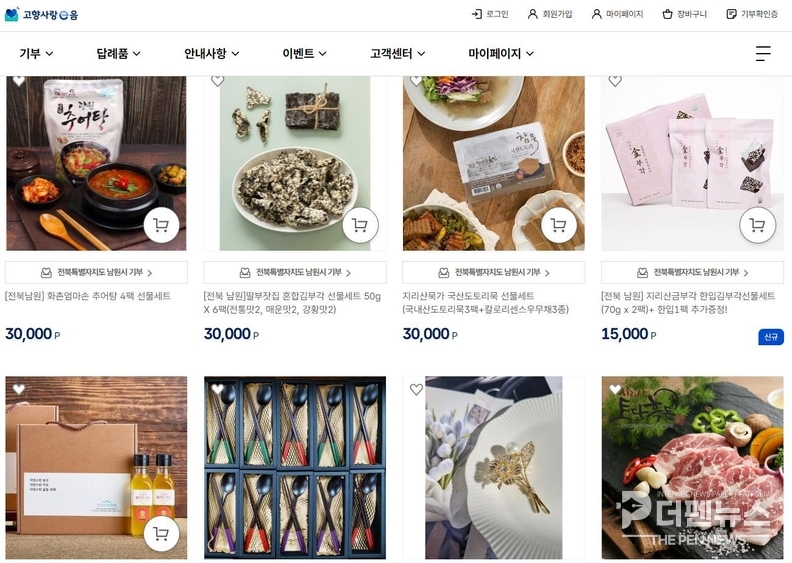 특히 지리산 흑돼지와 한우, 김부각, 추어탕 등 남원의 먹거리와 김병종미술관 아트상품, 방짜유기, 지역 생산 화장품 등 지역의 정체성을 담은 고품격 답례품이 기부자들로부터 높은 호응을 얻었다.