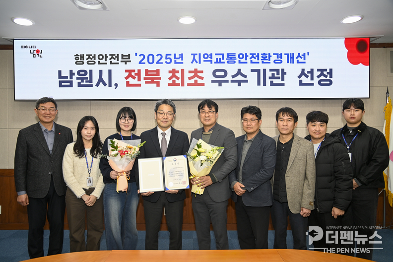 남원시(시장 최경식)는 행정안전부가 주관한 ‘2025년 지역교통안전환경개선’ 평가에서 전국 우수 지자체로 선정돼 행정안전부 장관 표창을 수상했다고 밝혔다. 전북특별자치도 내 시·군 가운데 해당 분야에서 장관 표창을 받은 것은 남원시가 처음이다.