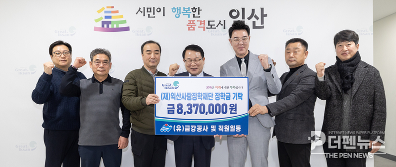 익산사랑장학재단 관계자는 “어려운 여건 속에서도 지역 인재를 위해 따뜻한 마음을 모아주신 금강공사 임직원과 노동조합에 깊이 감사드린다”며 “기탁된 장학금은 익산의 미래를 이끌 인재들에게 소중히 전달하겠다”고 밝혔다.