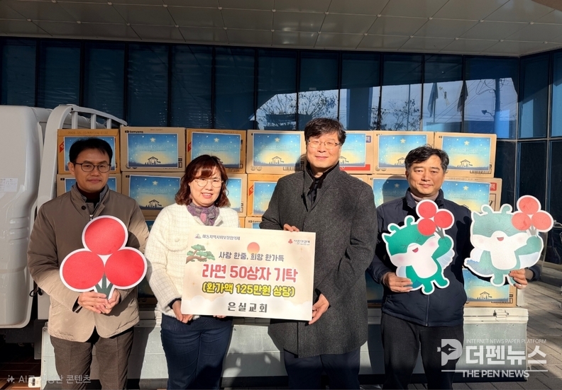 익산시 마동에 위치한 은실교회(목사 황선호)는 6일 마동 행정복지센터를 찾아 라면 50상자를 기탁했다. 전달된 라면은 지역 내 저소득 가구와 복지 사각지대에 놓인 50가정에 전달될 예정이다.