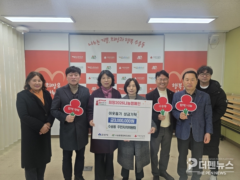 군산시 수송동(동장 곽은하)은 수송동 주민자치위원회(위원장 이미아)가 이웃돕기 성금 300만 원을 기탁하며 ‘희망 2026 나눔 캠페인’에 동참했다고 7일 밝혔다.