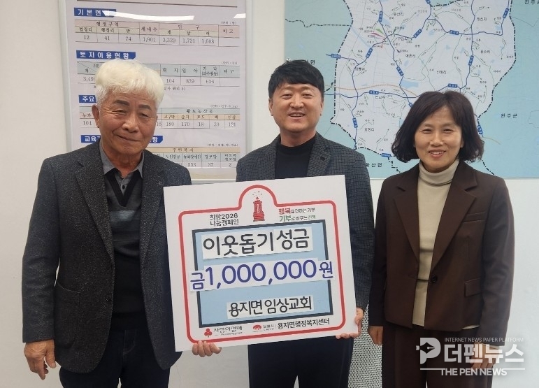 박선화 용지면장은 “지역사회를 위한 뜻깊은 나눔에 감사드린다”며 “기탁받은 성금은 도움이 필요한 이웃들에게 정성껏 전달하겠다”고 밝혔다.