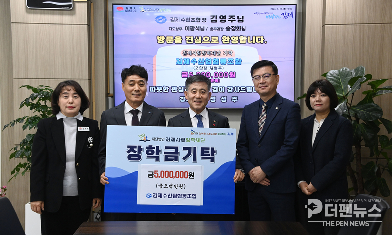 김제사랑장학재단은 19일 김제수산업협동조합과 새만금장례식장이 지역 인재 육성을 위한 장학금으로 각각