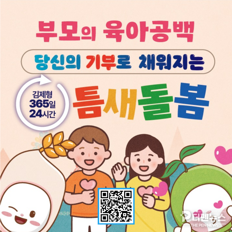 오는 21일부터 31일까지 10일간 ‘김제형 365일 24시간 아이돌봄센터 운영’ 지정기부사업에 20만원 이상 기부한 사람 가운데 7명을 추첨해 김제시 마스코트인 한정판 싸리콩이 캐릭터 인형(30cm) 세트를 증정한다. 당첨자는 개별 통보 후 경품이 발송된다.