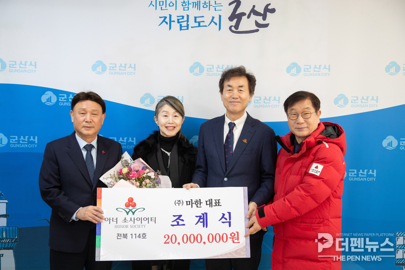 조 대표는 이번 기탁으로 군산시 16호이자 전북지역 114호 아너소사이어티 회원이 됐다. 기탁된 성금은 관내 저소득 가구와 사회복지시설·단체 지원에 사용될 예정이다.