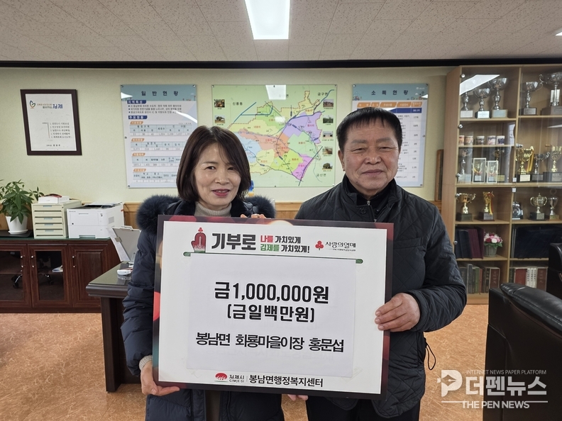 나성희 봉남면장은 “경제적으로 어려운 시기에도 소외된 이웃을 위해 꾸준히 나눔을 이어오신 데 깊이 감사드린다”며 “기탁해 주신 성금은 꼭 필요한 이웃들에게 소중히 전달하겠다”고 말했다.