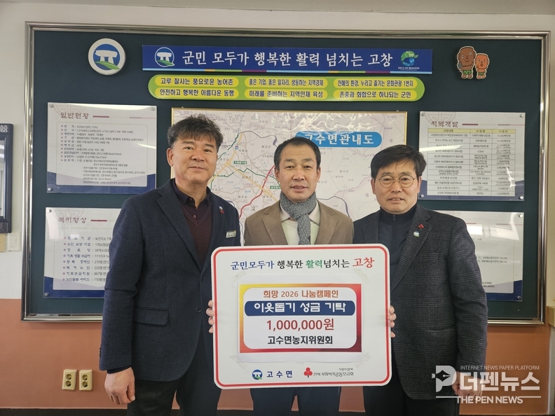 유성룡 고수면장은 “어려운 시기에도 고향을 생각하는 마음으로 나눔에 동참해주신 데 감사드린다”며 “기탁된 성금은 고수면만의 차별화된 복지 사업을 추진하는 데 소중히 사용하겠다”고 밝혔다.