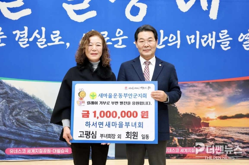 이날 하서농협이 200만 원을 기탁한 데 이어, 하서면 새마을부녀회원 일동과 석불산 파크골프클럽 회원 일동이 각각 100만 원씩을 전달해 모두 400만 원의 기부금이 모였다.