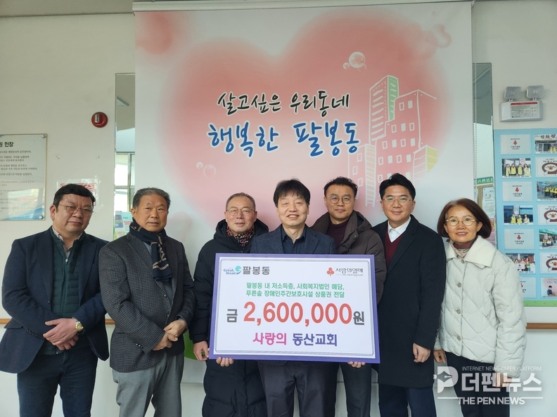 사랑의동산교회는 6일 팔봉동 지역사회보장협의체에 200만원 상당의 온누리상품권을 기탁했다. 이날 교회는 지역 장애인시설 2곳에도 각각 30만원 상당의 온누리상품권을 전달하며 이웃사랑을 실천했다.