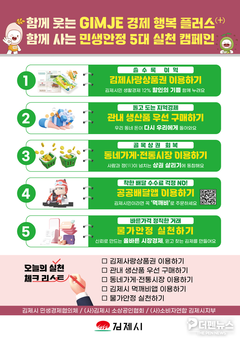 김제시는 이번 캠페인을 계기로 착한 소비와 지역 상권 이용 문화가 일상 속에 정착될 수 있도록 관련 홍보와 지원 정책을 지속적으로 추진할 방침이다.