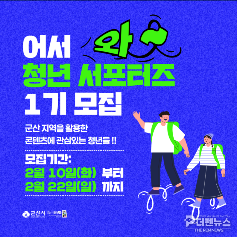 군산시 청년뜰이 지역 자원을 활용한 홍보 콘텐츠 제작과 창작 활동을 이끌 ‘군산 청년 서포터즈 1기’를 공개 모집한다.