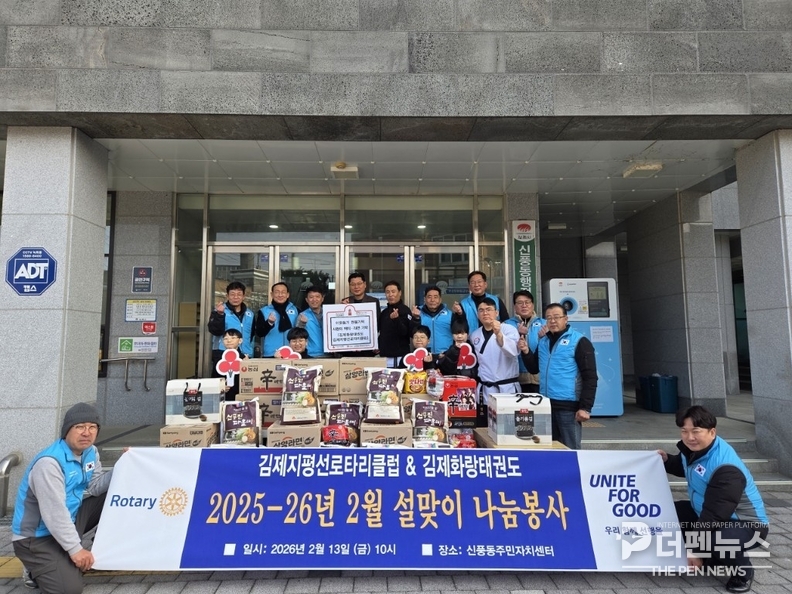 설 명절을 앞두고 전북 김제에서 어려운 이웃을 위한 따뜻한 나눔이 이어졌다. 김제지평선로타리클럽과 김제화랑태권도는 13일 김제시 신풍동 주민자치센터 앞에서 ‘설맞이 나눔봉사’ 행사를 열고 지역 어르신과 저소득층 가정을 위한 식료품을 전달했다.