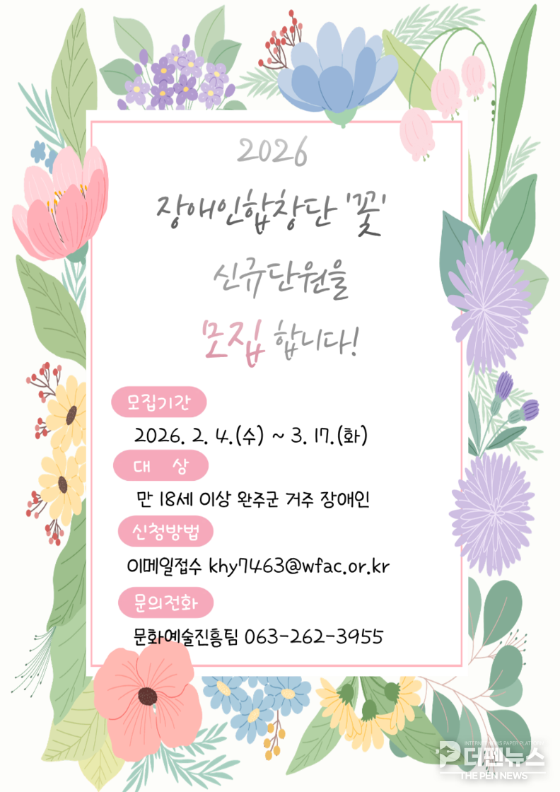 완주문화재단이 장애인의 문화예술 참여 확대를 위해 2026 완주장애인합창단 ‘꽃’ 신규 단원을 모집한다.