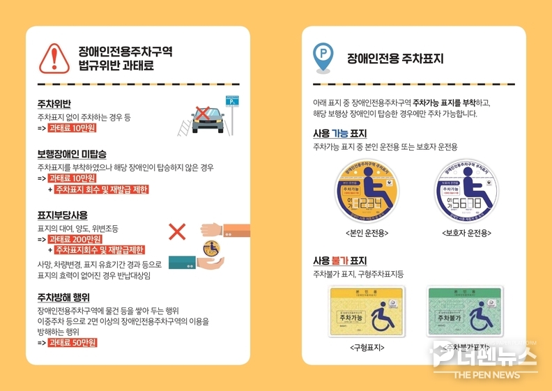 최근 전용 구역에 비장애인 차량이 주차하거나 타인의 장애인 자동차 표지를 사용하는 사례가 지속적으로 발생한 데 따른 조치다.