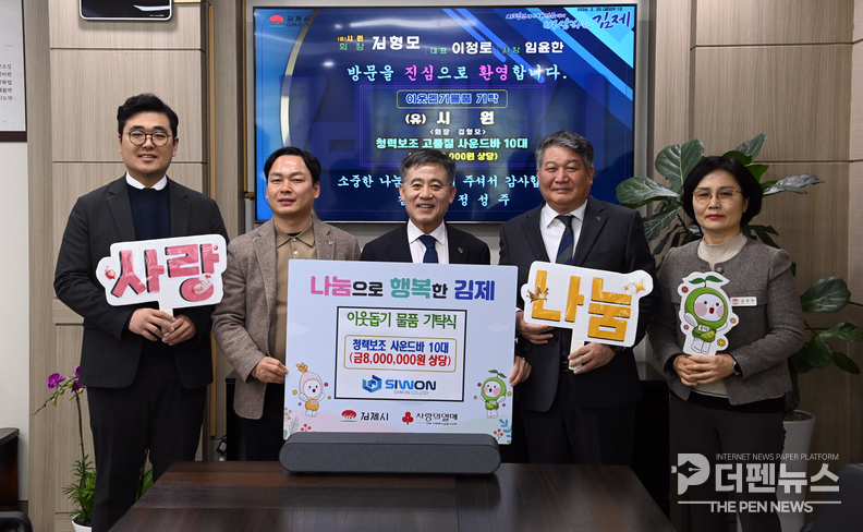 전북 김제시는 (유)시원이 지역 경로당 10개소에 청력보조 기능을 갖춘 고품질 사운드바 10대(800만원 상당)를 기탁했다고 20일 밝혔다.