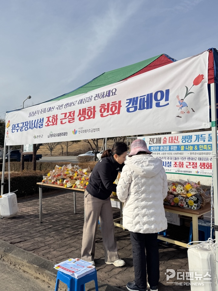이번 캠페인은 완주군과 한국화훼자조금협의회가 체결한 ‘플라스틱 조화 근절 및 생화 헌화 문화 정착’ 업무협약에 따른 첫 실천 사업이다.