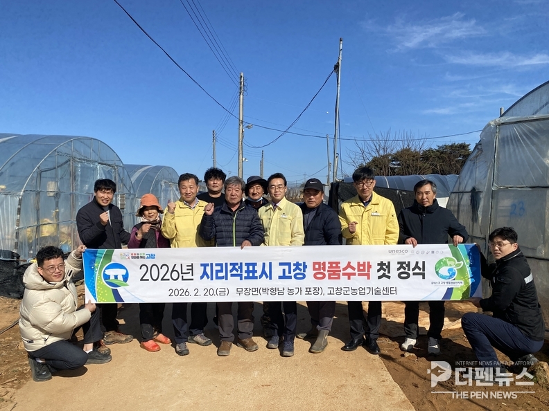 고창군은 지난 20일 무장면 박형남 농가 수박 재배포장에서 관계자와 농업인 등이 참석한 가운데 ‘2026년 지리적표시 고창 명품수박 첫 정식 행사’를 열었다고 밝혔다.