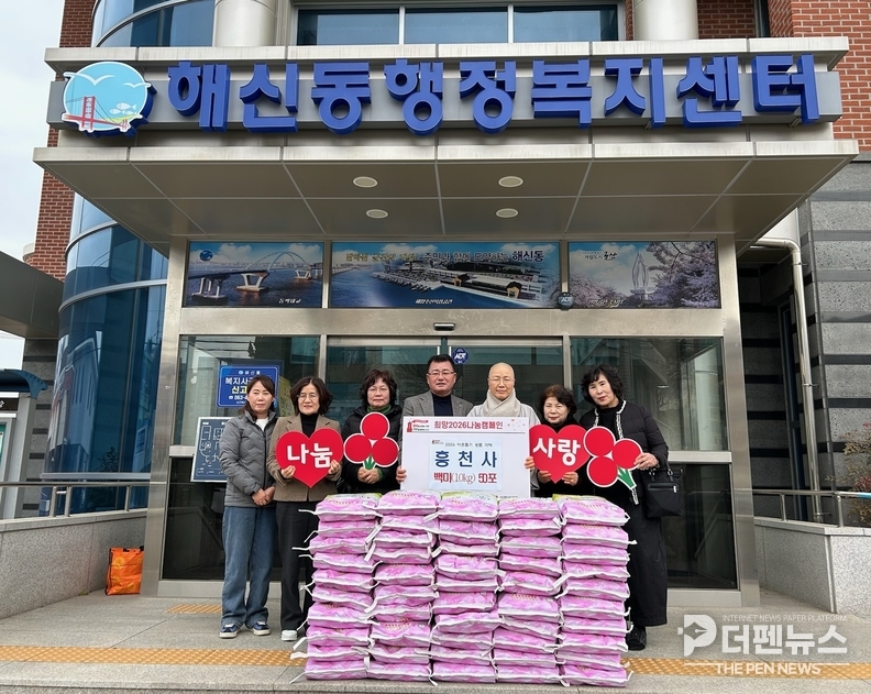 흥천사는 지난 23일 해신동 행정복지센터를 찾아 백미 10kg 50포(132만원 상당)를 기탁했다고 23일 밝혔다. 기탁 물품은 전북사회복지공동모금회를 통해 관내 취약계층과 복지 사각지대 위기가정에 전달될 예정이다.