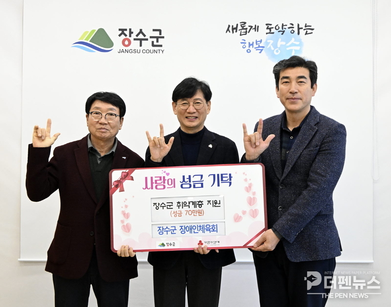 장수군장애인체육회는 25일 지역 내 어려운 이웃을 돕기 위해 성금 70만 원을 장수군에 기탁했다고 밝혔다.