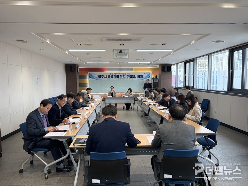 전주시는 26일 한국전통문화전당 세미나실에서 ‘전주시 공공기관 유치 추진단’ 첫 회의를 열었다고 밝혔다. 추진단은 윤동욱 전주시 부시장을 단장으로 관련 실·국장, 출연기관 관계자, 분야별 외부 전문가 등 20여 명으로 꾸려졌다.
