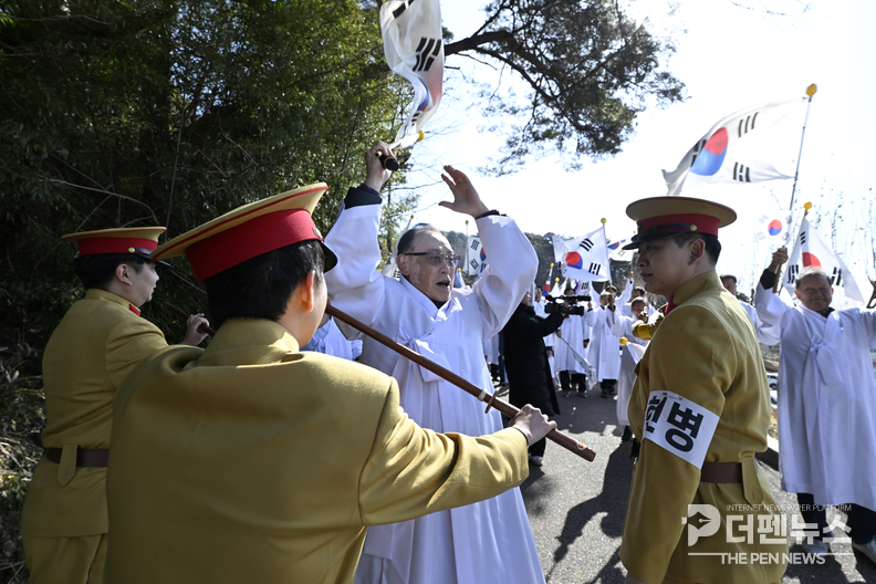 남원시 덕과면 사율리 동해골 3·1절 기념탑 광장에서 제107주년 3·1절을 맞아 독립만세운동 재현행사가 열렸다.