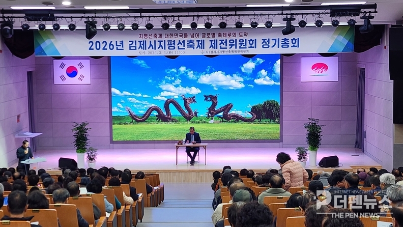 김제시지평선축제제전위원회(위원장 송성규)는 3일 김제시청 대강당에서 정기총회를 개최했다. 이날 총회에는 정성주 김제시장을 비롯해 제전위원회 임원과 위원 등 400여명이 참석했다.