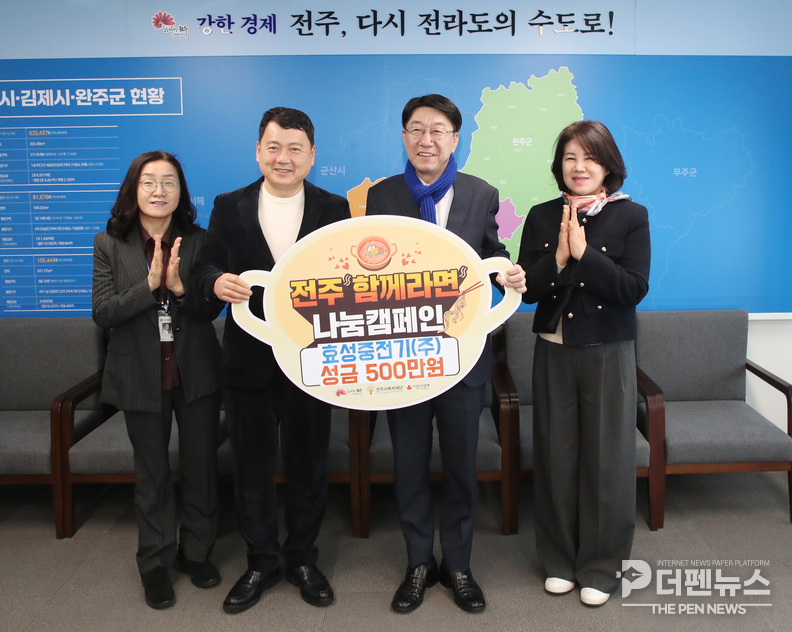 효성중전기㈜(대표 김용희)는 3일 전주시장실을 찾아 ‘전주함께복지’ 사업 추진을 위한 성금 500만원을 전달했다.
