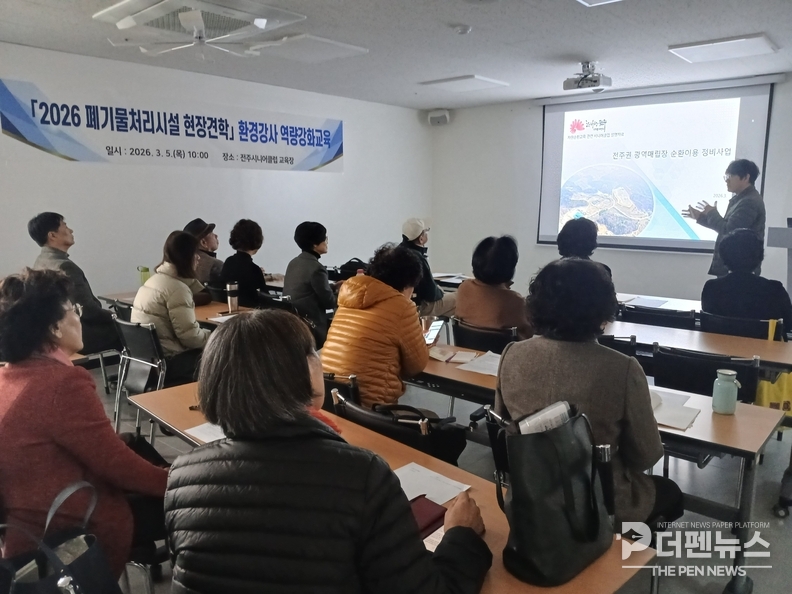 전주시는 5일 전주시니어클럽 교육장에서 2026년 폐기물처리시설 현장 견학 프로그램을 이끌 환경강사를 대상으로 역량 강화 교육을 실시했다고 밝혔다.