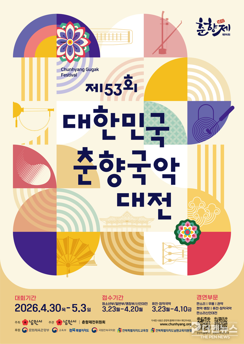 한편 제53회 춘향국악대전의 접수 일정과 세부 사항은 3월 초 남원시와 춘향제전위원회 누리집을 통해 공지될 예정이다.