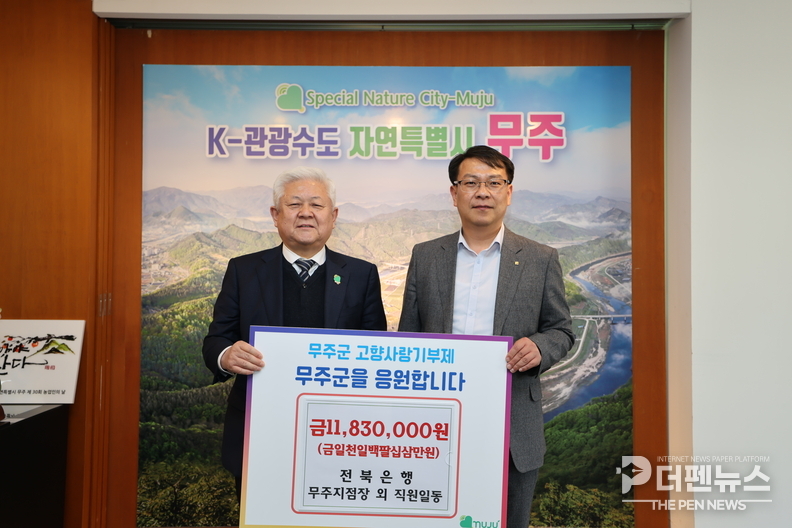 무주군은 전북은행 무주지점 임직원과 가족, 지인 등 119명이 고향사랑기부금 1,183만 원을 모아 지난 10일 군에 기탁했다고 밝혔다.
