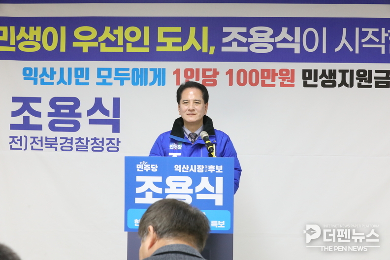 더불어민주당 조용식 익산시장 예비후보가 ‘익산시민 1인당 100만 원 민생지원금 지급’ 공약을 다시 한번 강조하며 실행 의지를 분명히 했다.