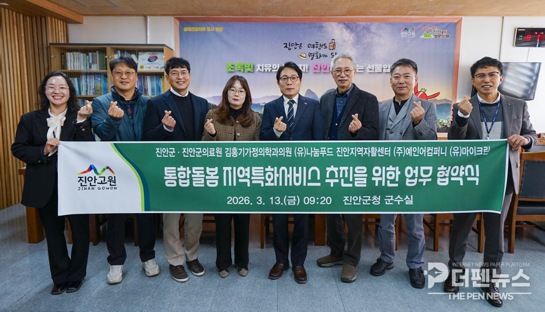 김대환 진안군 사회복지과장은 “이번 협약은 어르신들이 살던 지역에서 안전하게 노후를 보낼 수 있도록 지역사회가 함께 돌봄 체계를 마련한 의미 있는 출발”이라며 “민관 협력을 통해 진안군 실정에 맞는 촘촘한 돌봄 안전망을 구축해 나가겠다”고 말했다.